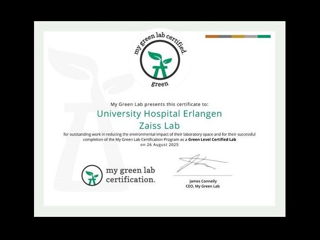 Nachhaltigkeit in der Wissenschaft: Zaiss Lab erhält My Green Lab Zertifizierung